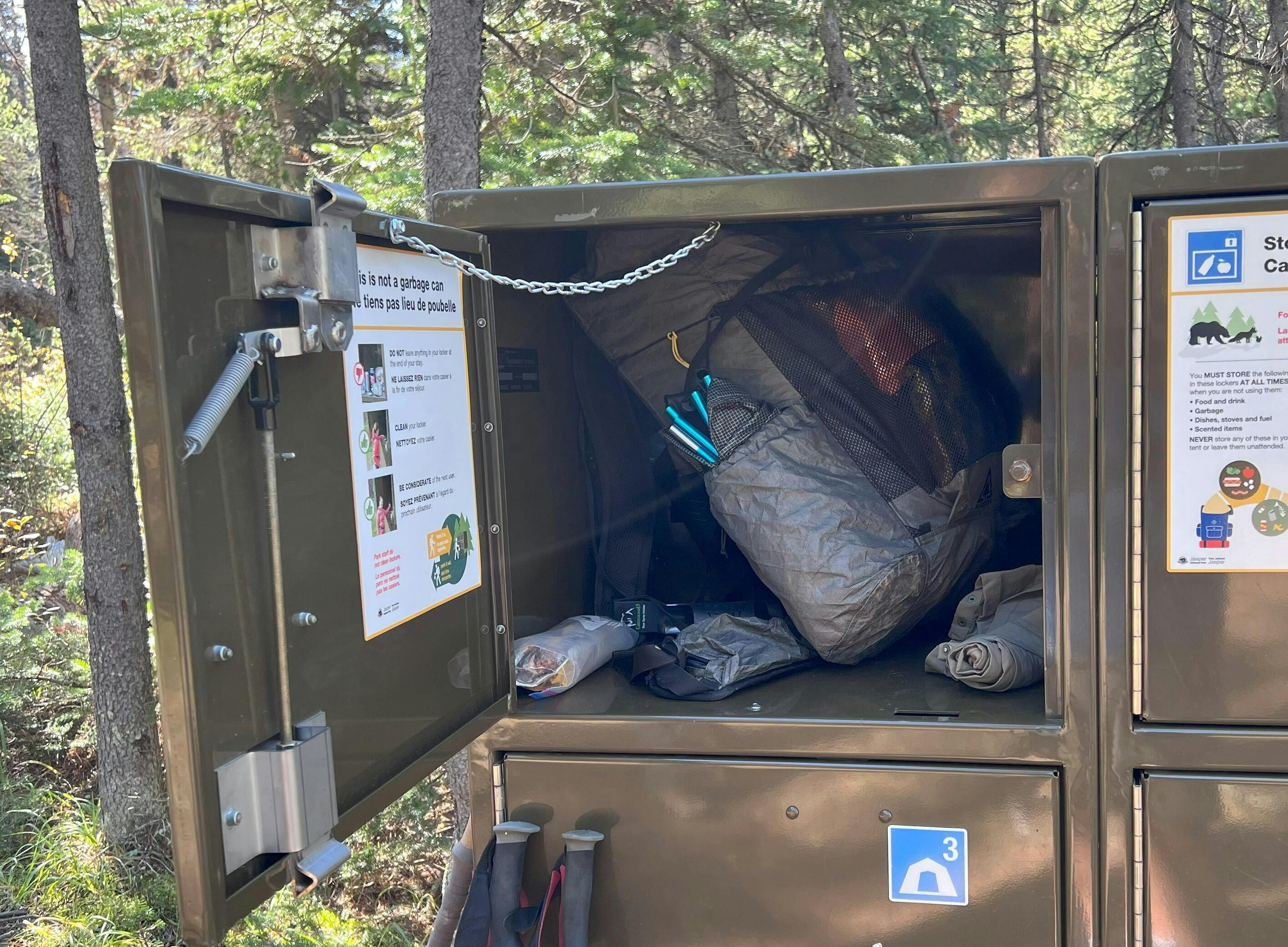 For the BearVault line, the BV425, BV450, BV475 and BV500 will fit. For the Bearikade line, the Scout and Weekender will fit while their Blazer and Expedition canisters are too large. Other canisters that fit are the Bear Boxer, Garcia Backpackers Cache and UDAP No-Fed-Bear. The Counter Assault Bear Keg is too large. Canisters that are too large to fit horizontally can be stored vertically inside, or horizontally on the top of the pack under the Y strap.