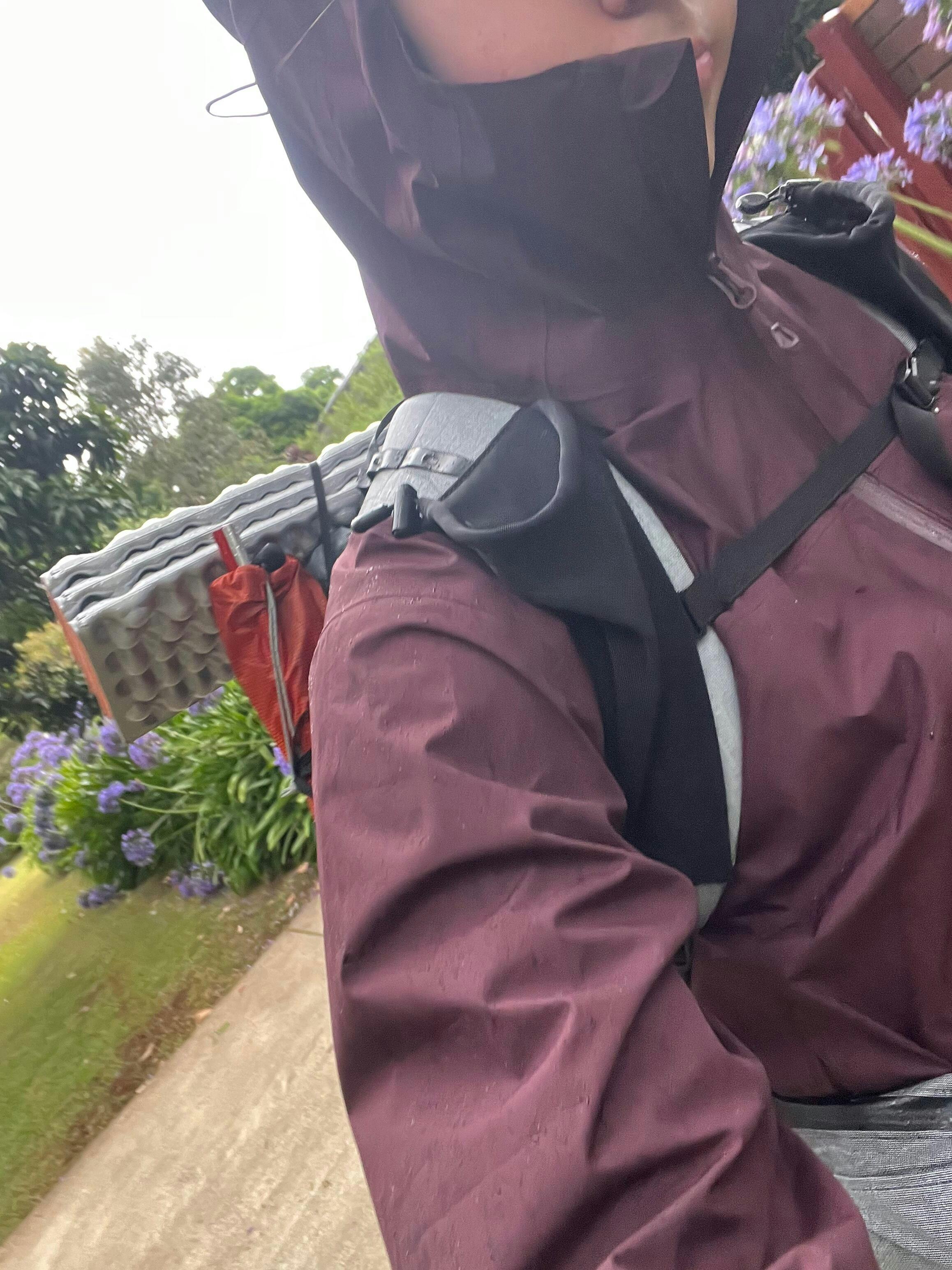 Also please keep in mind that water could enter if the pack is damaged or if wet items are placed inside, so precautions for sensitive items like electronics are still recommended. The open topped pockets on the shoulder straps and front are not waterproof (of course), and neither are the hipbelt pockets. The hipbelt pockets are water resistant because the fabric is waterproof but they are not seam taped.